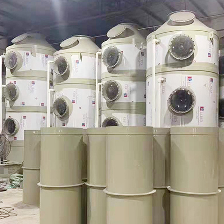 - 喷淋塔废气处理错流工艺流程,即水雾通过填料层回到洗涤塔底部水箱回收,洗涤安装自动搅拌加药系统,自动检测中和液酸碱,根据中和液浓度自动加药,使中和液保持一定酸(碱)状态,不会因中和液偏差引起废气处理......