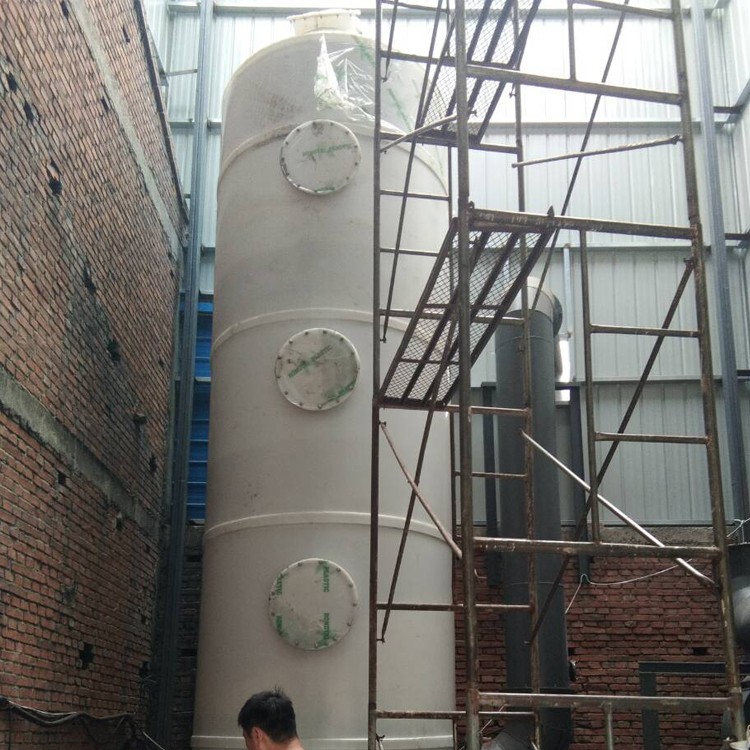 废气废液进入塔内,与塔内的洗涤液充分接触,可以除去杂质,达到净化气体的作用。 本身包含有本体、填充层、除雾层、循环洒水管路,及循环水槽等。