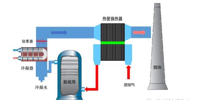 (4)脱硫后净烟气通过换热器冷凝,降低烟气温度,冷凝回收烟气中的水分;