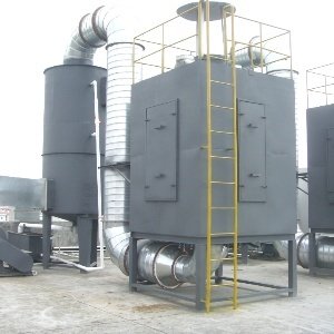 我公司为这家饲料厂使用的是药水洗涤塔,该设备的主体就是水膜净化器,塔体里面是水和药剂组合而成,药剂是我公司研发而成,有我们的秘方。该设备的溶液可以过滤粉尘和净化车间异味的作用,药水就是